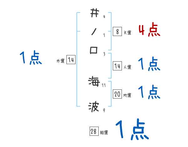 外運![]() | 井ノ口海波さんの外運は14画の1つ星!人に対して優しいがストレスを溜め込みがち。人間関係のトラブルを避けるよう気をつけましょう。 生活面を象徴する運勢です。外部から受ける影響力を表し、結婚運、家庭運や職場、環境への順応性を表します。 |