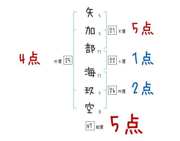 矢加部海玖空さんの画数の鑑定結果