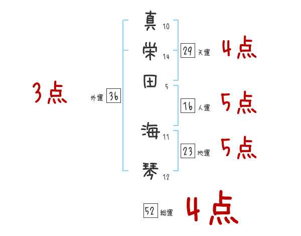 真栄田海琴さんの画数の鑑定結果
