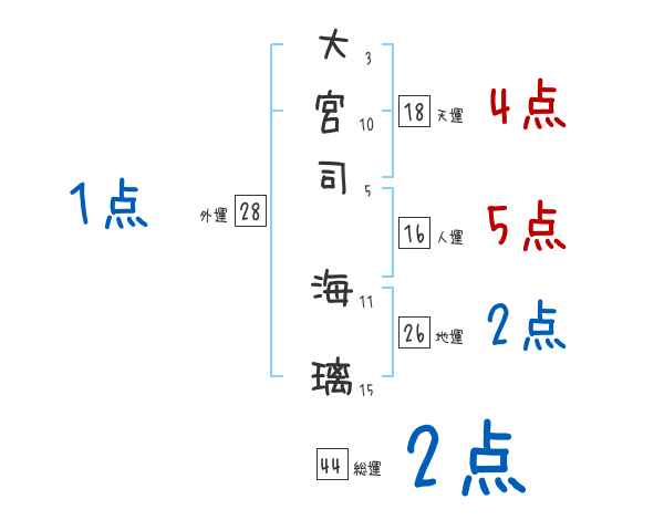 大宮司海璃さんの画数の鑑定結果