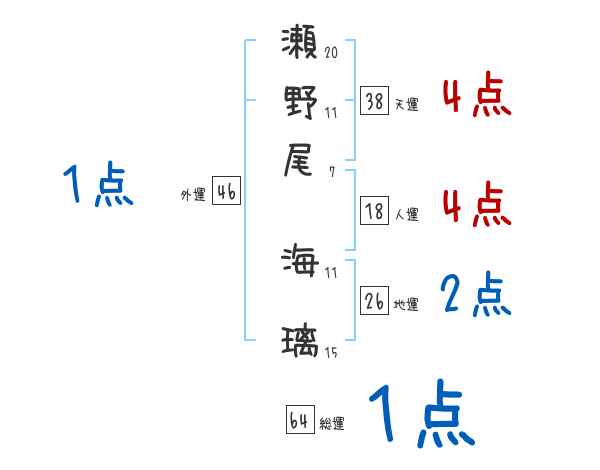 瀬野尾海璃さんの画数の鑑定結果