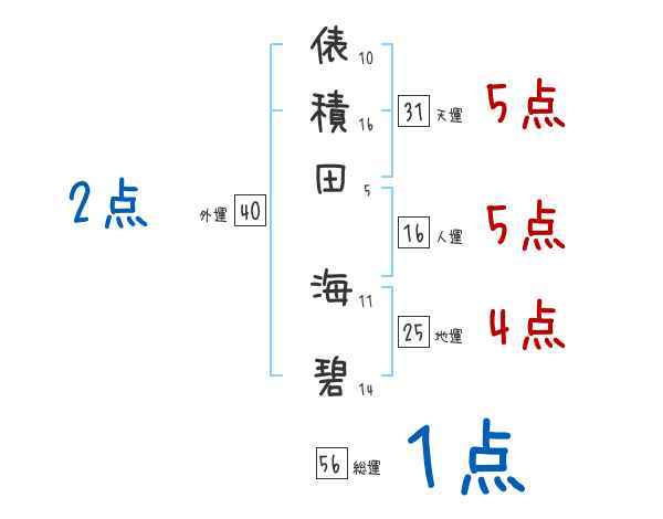 俵積田海碧さんの画数の鑑定結果