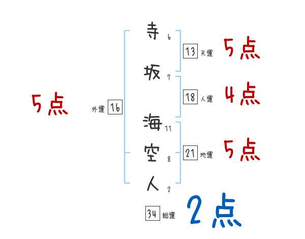 寺坂海空人さんの画数の鑑定結果