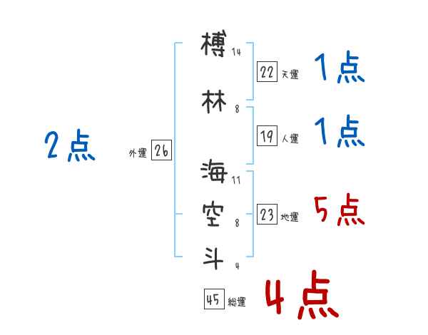 天運![]() | 榑林海空斗さんの天運は22画の1つ星!努力することが苦手ないっぽう手先が器用。芸術性にも優れる。 家系が持つ宿命的な運勢を表します。祖先から受け継いだ苗字ですので自分の力が及びません。家柄を象徴します。 |