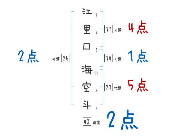 家系が持つ宿命的な運勢を表します。祖先から受け継いだ苗字ですので自分の力が及びません。家柄を象徴します。