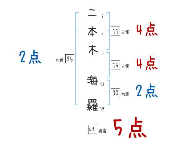 二本木海羅さんの画数の鑑定結果