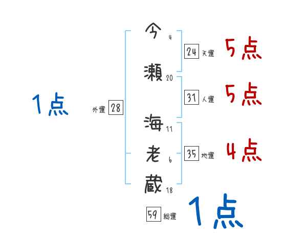 今瀬海老蔵さんの画数の鑑定結果