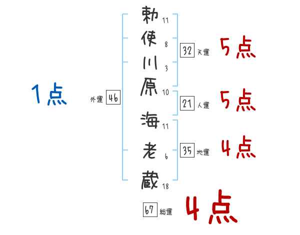 天運![]() | 勅使川原海老蔵さんの天運は32画の5つ星!柔軟性があり成功する。チャンスが多く金運が良い。 家系が持つ宿命的な運勢を表します。祖先から受け継いだ苗字ですので自分の力が及びません。家柄を象徴します。 |