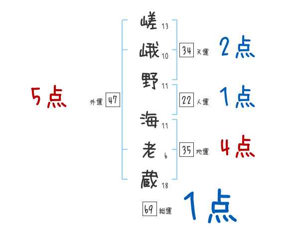 嵯峨野海老蔵さんの画数の鑑定結果