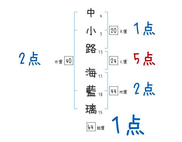 地運![]() | 中小路海藍璃さんの地運は44画の2つ星!誠実で慎重な性格。物事を考えすぎないように注意しましょう。 個性を表す基礎的な運勢です。性格形成や対人関係、行動力など家庭環境に影響されます。主に誕生してから20歳くらいまでの若年期の運勢を表します。 |