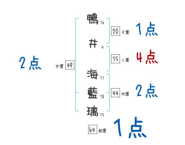 鴨井海藍璃さんの画数の鑑定結果