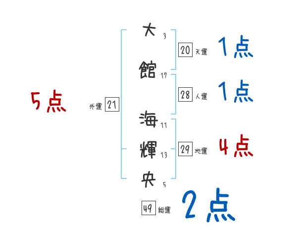 大館海輝央さんの画数の鑑定結果