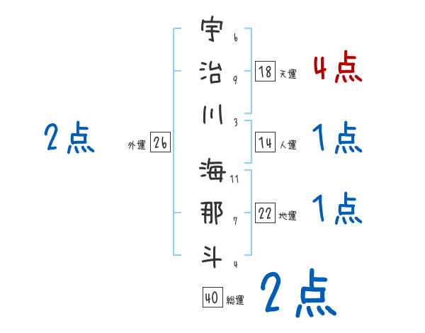 宇治川海那斗さんの画数の鑑定結果