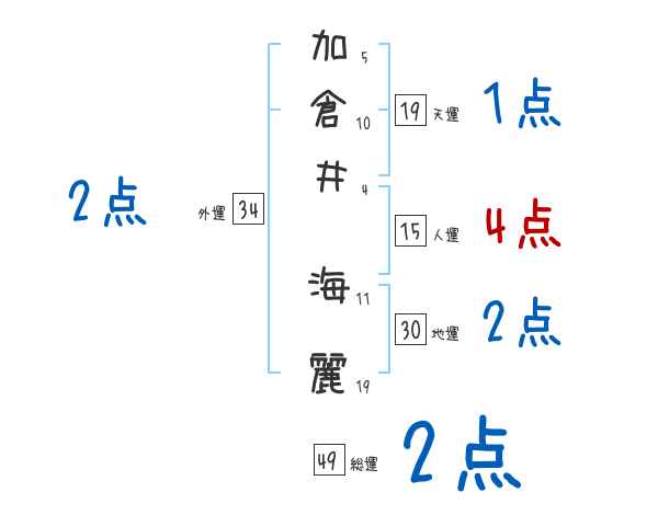 加倉井海麗さんの画数の鑑定結果