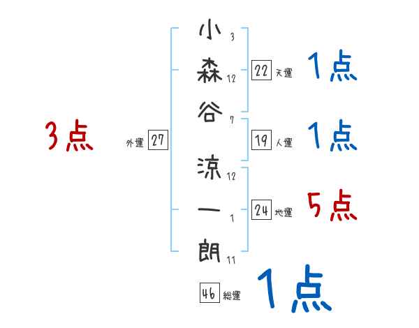 小森谷涼一朗さんの画数の鑑定結果