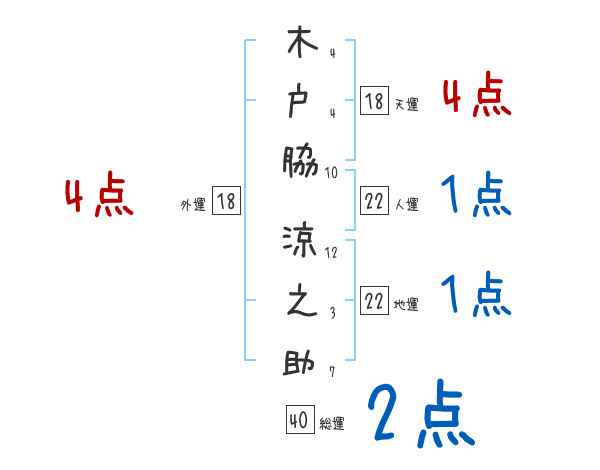 木戸脇涼之助さんの画数の鑑定結果