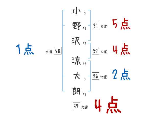 小野沢涼大朗さんの画数の鑑定結果