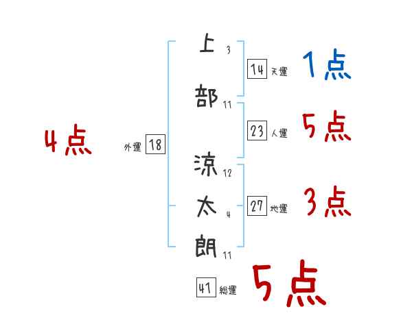 上部涼太朗さんの画数の鑑定結果
