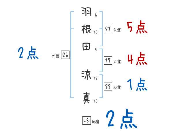 羽根田涼真さんの画数の鑑定結果