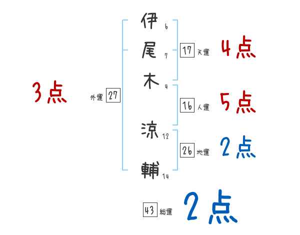 伊尾木涼輔さんの画数の鑑定結果