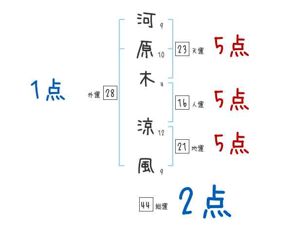 河原木涼風さんの画数の鑑定結果