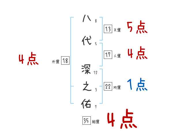 八代深之佑さんの画数の鑑定結果