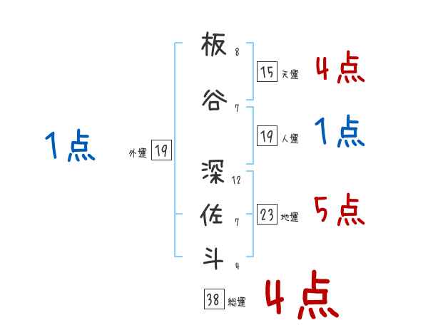 板谷深佐斗さんの画数の鑑定結果