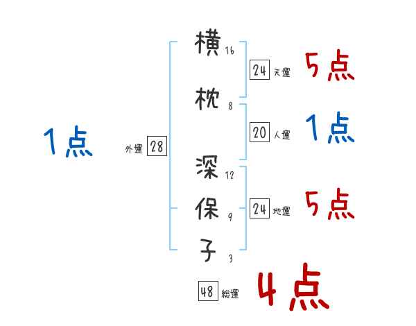 天運![]() | 横枕深保子さんの天運は24画の5つ星!家庭運が良く順調な人生。金運にも恵まれる。 家系が持つ宿命的な運勢を表します。祖先から受け継いだ苗字ですので自分の力が及びません。家柄を象徴します。 |