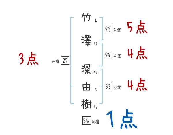 天運![]() | 竹澤深由樹さんの天運は23画の5つ星!想像力に優れ活力がある。一代で成功し名誉を手に入れる。 家系が持つ宿命的な運勢を表します。祖先から受け継いだ苗字ですので自分の力が及びません。家柄を象徴します。 |