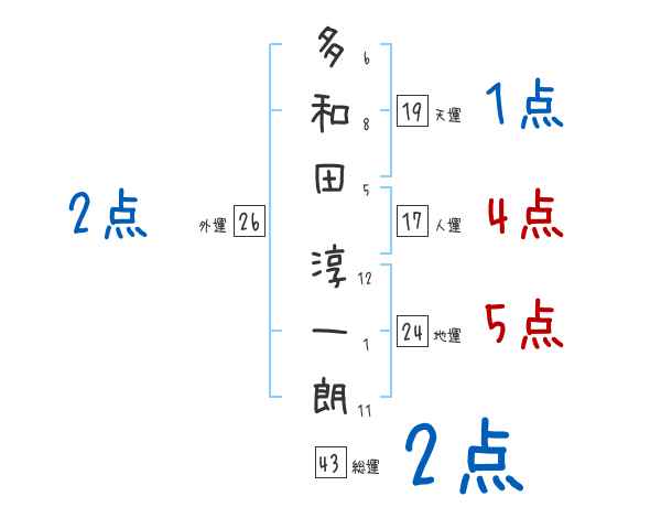 多和田淳一朗さんの画数の鑑定結果