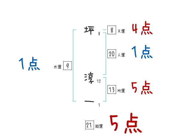 坪淳一さんの画数の鑑定結果