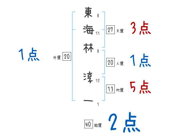 人運![]() | 東海林淳一さんの人運は20画の1つ星!社交が苦手。人とは違った才能があり波乱万丈な人生かも。 性格や才能などを表す2番目に重要な運勢です。人間関係や協調性、社会的な成功に影響します。主に20歳から50歳ぐらいまでの中年期の運勢を表します。 |