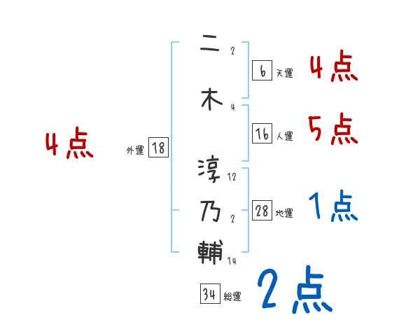 二木淳乃輔さんの画数の鑑定結果