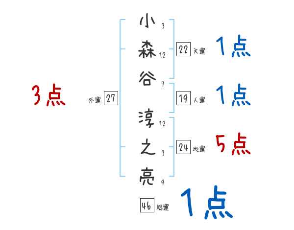 小森谷淳之亮さんの画数の鑑定結果