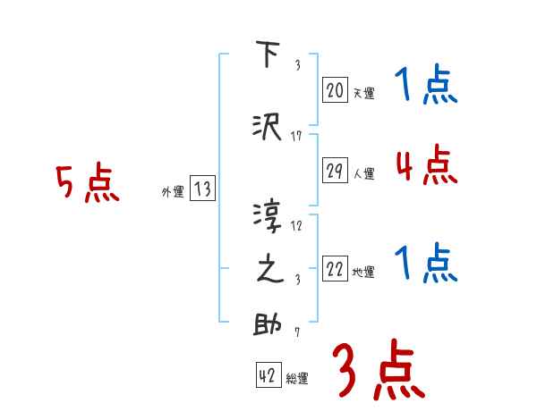 地運![]() | 下沢淳之助さんの地運は22画の1つ星!努力することが苦手ないっぽう手先が器用。芸術性にも優れる。 個性を表す基礎的な運勢です。性格形成や対人関係、行動力など家庭環境に影響されます。主に誕生してから20歳くらいまでの若年期の運勢を表します。 |
