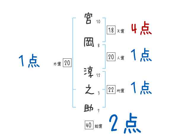 宮岡淳之助さんの画数の鑑定結果