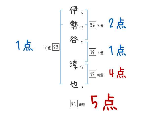 外運![]() | 伊勢谷淳也さんの外運は22画の1つ星!努力することが苦手ないっぽう手先が器用。芸術性にも優れる。 生活面を象徴する運勢です。外部から受ける影響力を表し、結婚運、家庭運や職場、環境への順応性を表します。 |