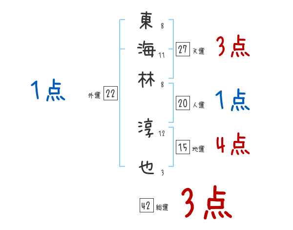 総運![]() | 東海林淳也さんの総運は42画の3つ星!病気に注意。多芸であるが消極的でおとなしい。 あなたの人生を表す1番重要な運勢です。生涯を通じて影響する総合運となり、主に50歳以降の晩年期に影響を及ぼします。 |
