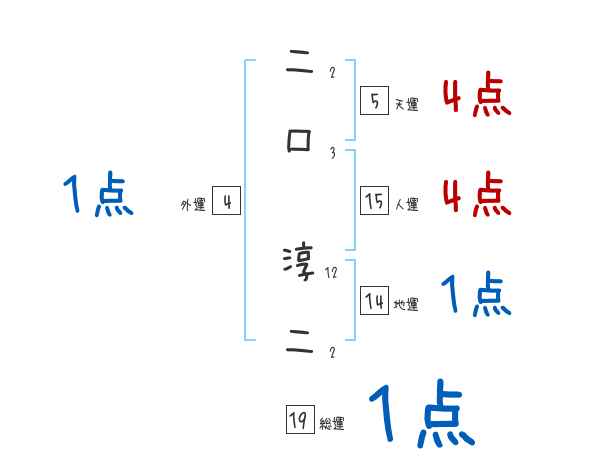 二口淳二さんの画数の鑑定結果