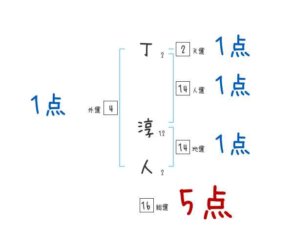 丁淳人さんの画数の鑑定結果