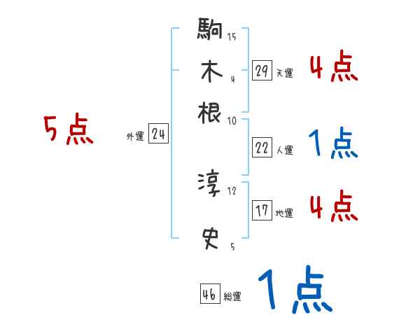 駒木根淳史さんの画数の鑑定結果