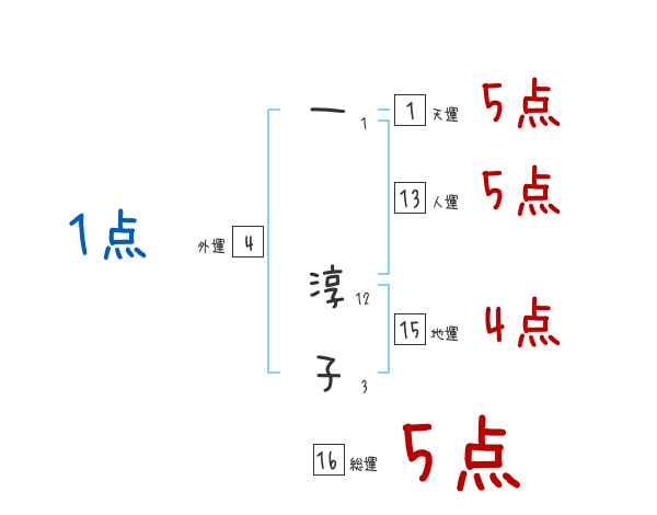 天運![]() | 一淳子さんの天運は1画の5つ星!行動力、指導力があり出世し繁栄する。幸運に恵まれる。 家系が持つ宿命的な運勢を表します。祖先から受け継いだ苗字ですので自分の力が及びません。家柄を象徴します。 |