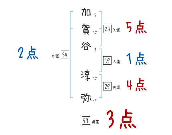 加賀谷淳弥さんの画数の鑑定結果