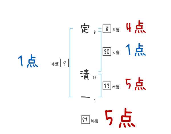 外運![]() | 定清一さんの外運は9画の1つ星!消極的で才能を発揮することが苦手なことも。周りの意見に耳を傾けましょう。 生活面を象徴する運勢です。外部から受ける影響力を表し、結婚運、家庭運や職場、環境への順応性を表します。 |