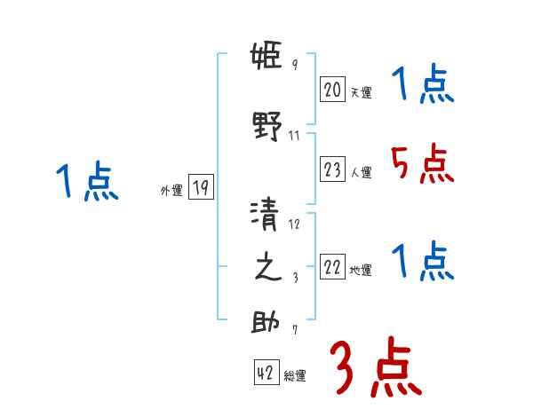 姫野清之助さんの画数の鑑定結果