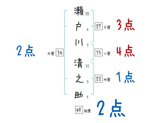 瀬戸川清之助さんの画数の鑑定結果