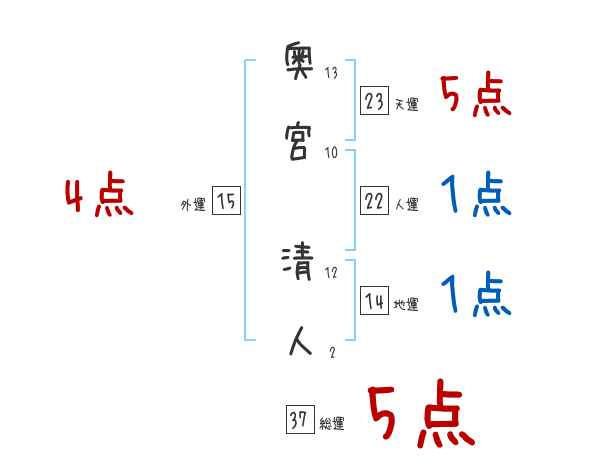 奥宮清人さんの画数の鑑定結果