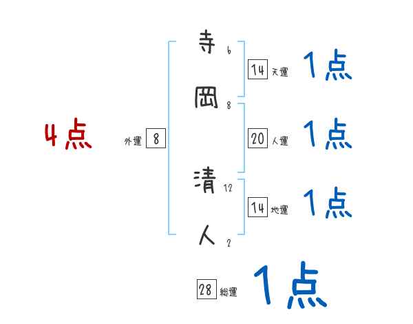 寺岡清人さんの画数の鑑定結果