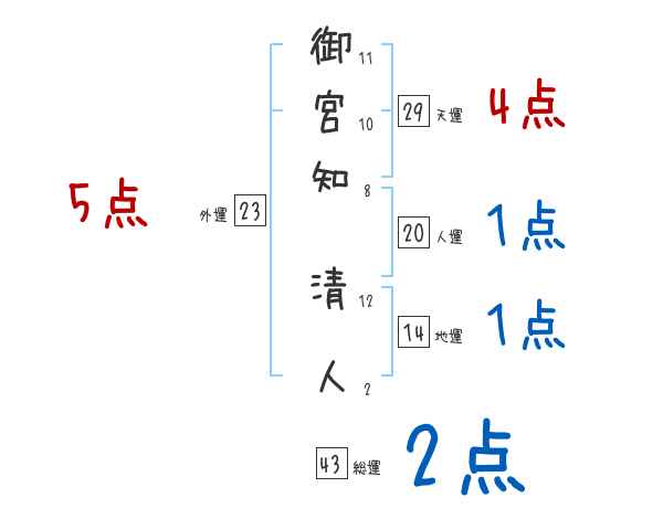 御宮知清人さんの画数の鑑定結果