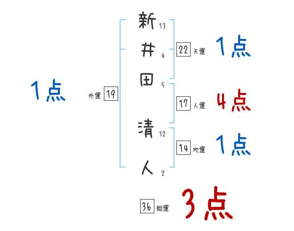 新井田清人さんの画数の鑑定結果